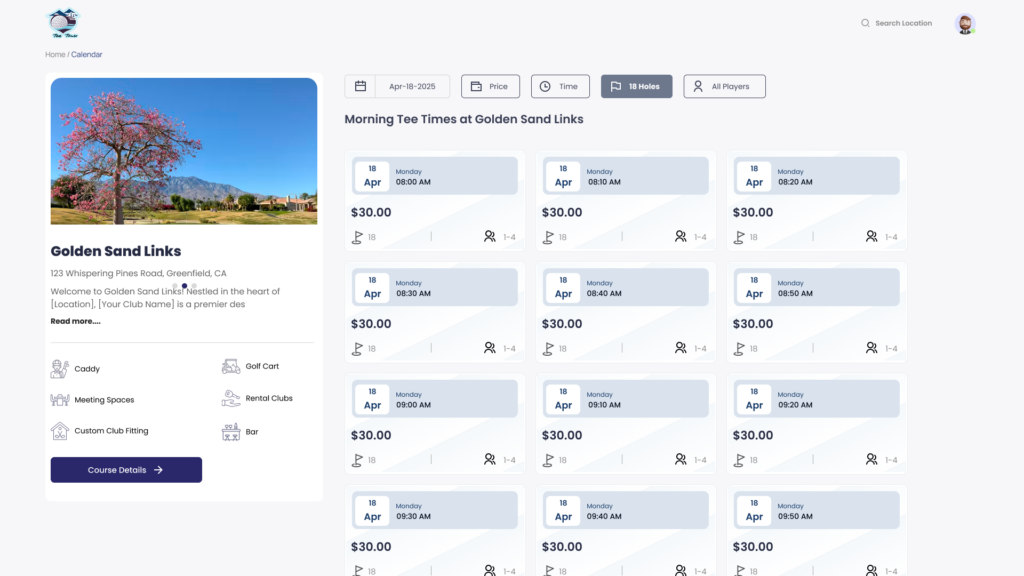 Tee Time Hub – Golfer View